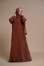 Embellished contrast-color abaya with laser-cut work (Brown&Beige)
